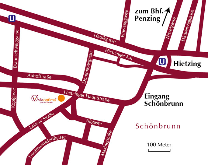 Mit öffentlichen Verkehrsmitteln erreichbar: Station Hietzing (U4, Bus, Straßenbahnlinie 10), dann ca. 7 Minuten zu Fuß; Bahnhof Penzing